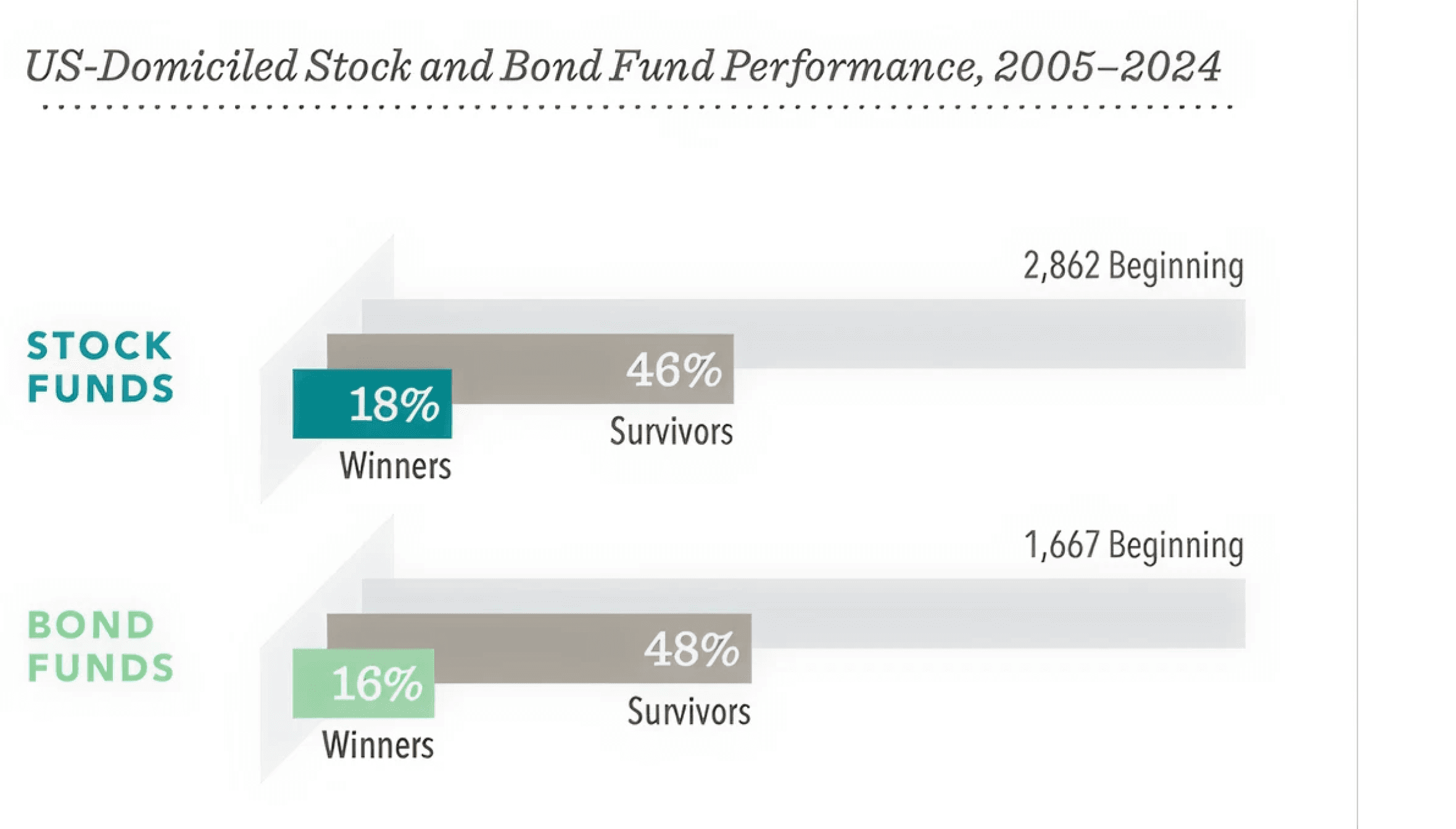 In simple terms: the market is always one step ahead. By the time you or anyone else hears good or bad news, it's likely already been factored into the price of the investment. This means it’s incredibly challenging, if not impossible, to consistently ‘beat the market’ by picking individual stocks or timing when to buy or sell. Many professional fund managers try to do this (active management), but research shows that most don't outperform the market over the long term, especially after fees (as shown above).